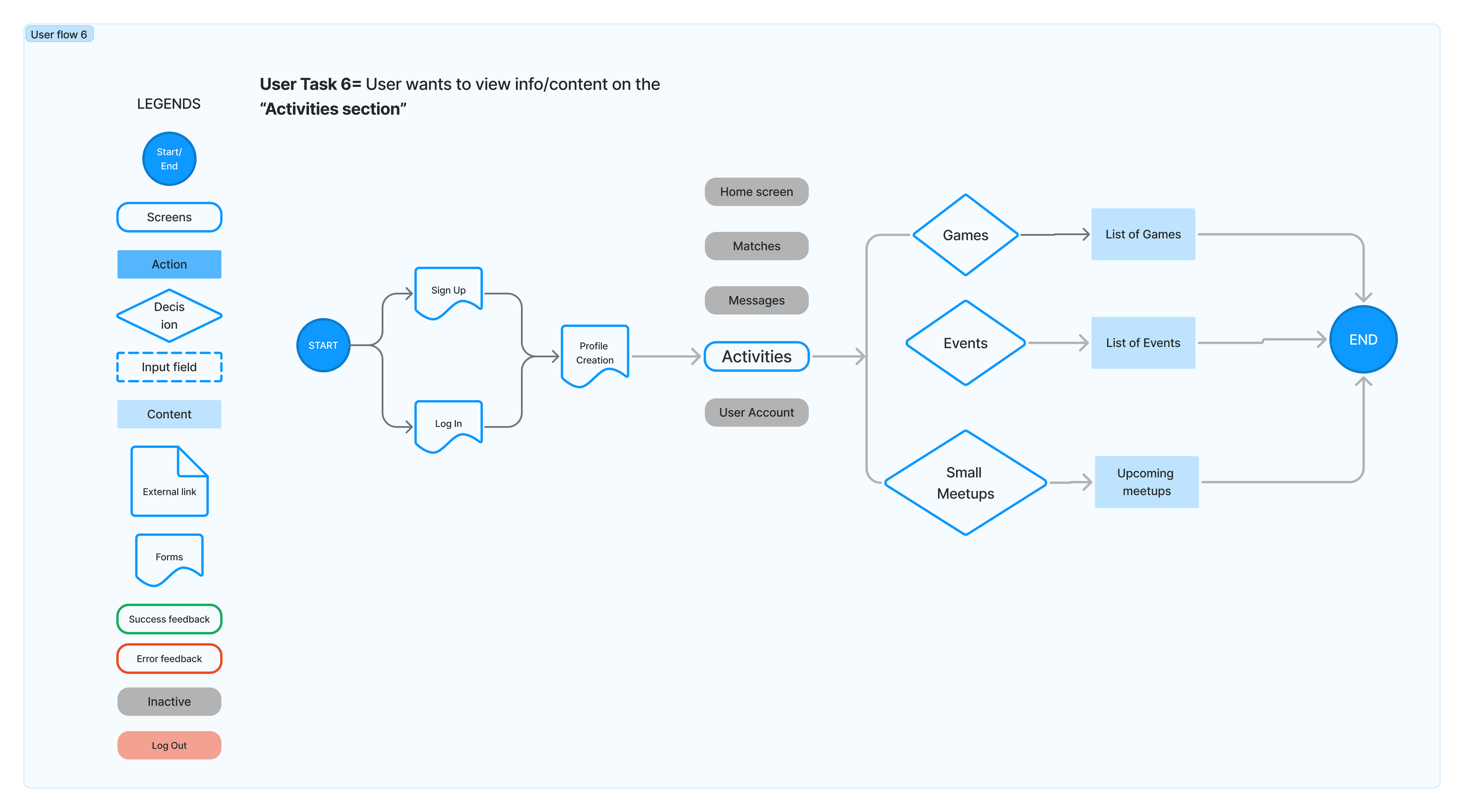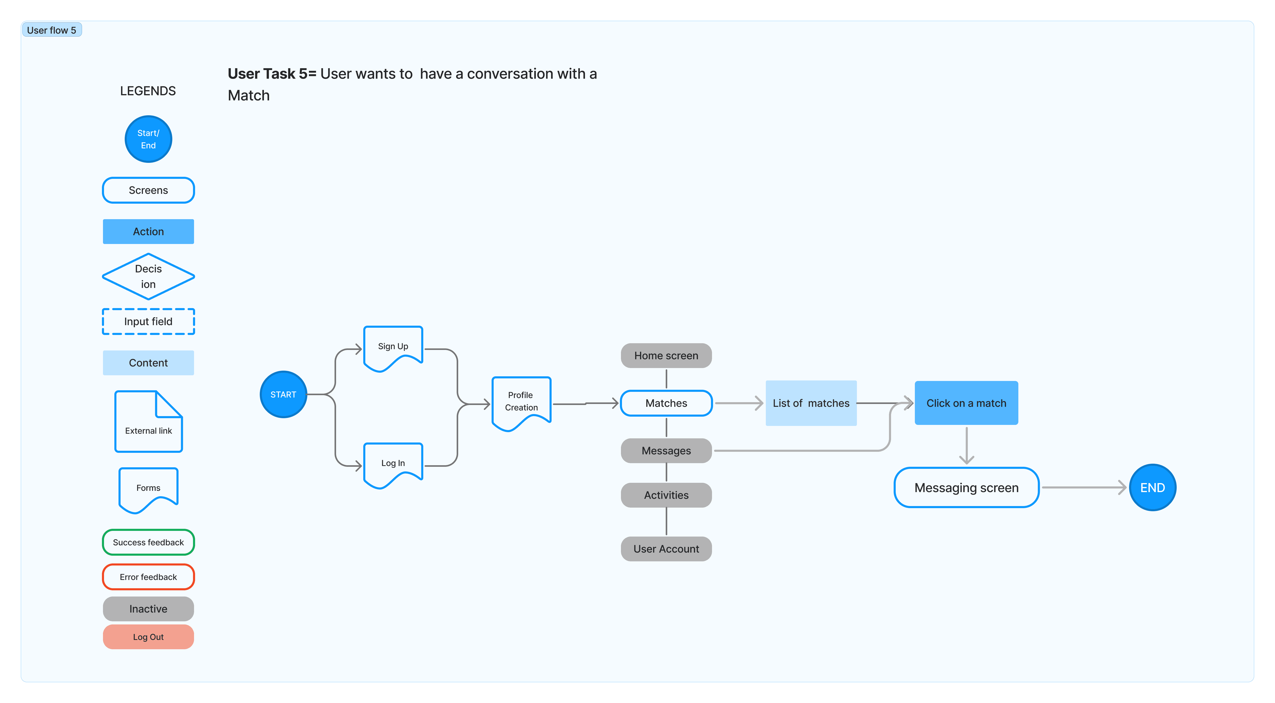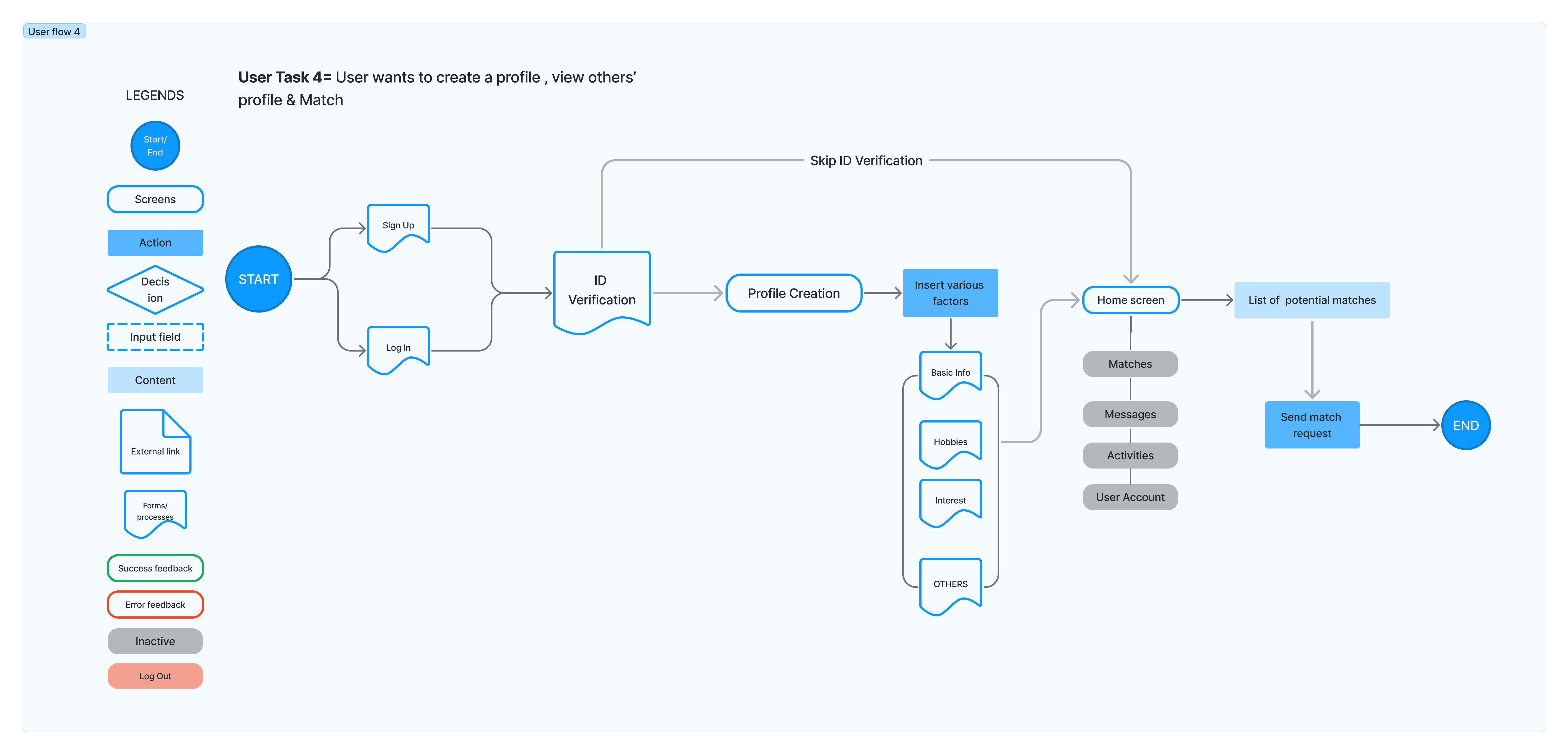 I also developed User Flows to map the key actions users take within the app, from creating a profile to connecting with others. These flows were critical in eliminating friction and creating a seamless experience throughout the app.