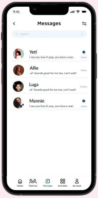 Interest-based Matching: Matches users based on shared factors to foster meaningful friendships.