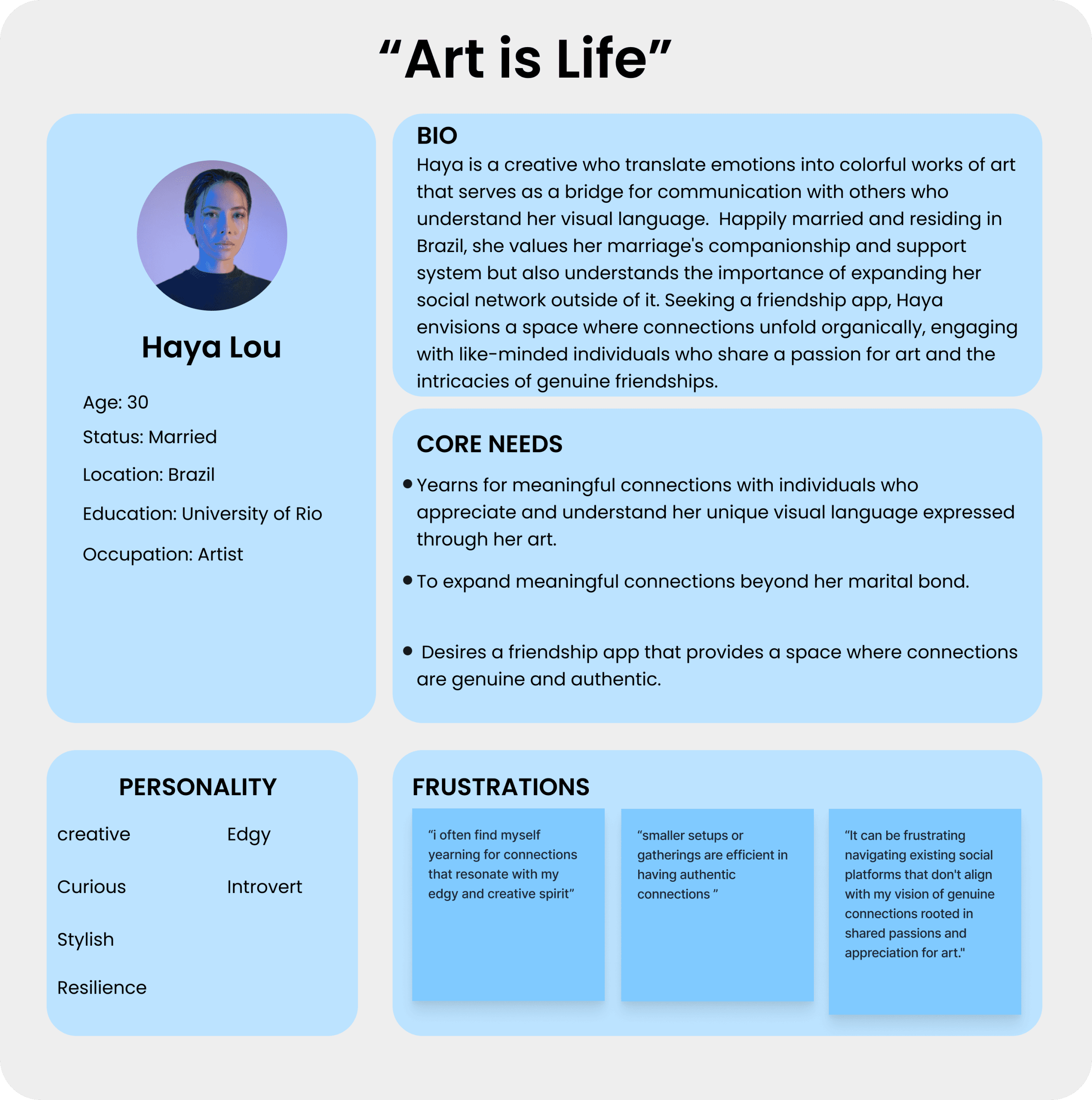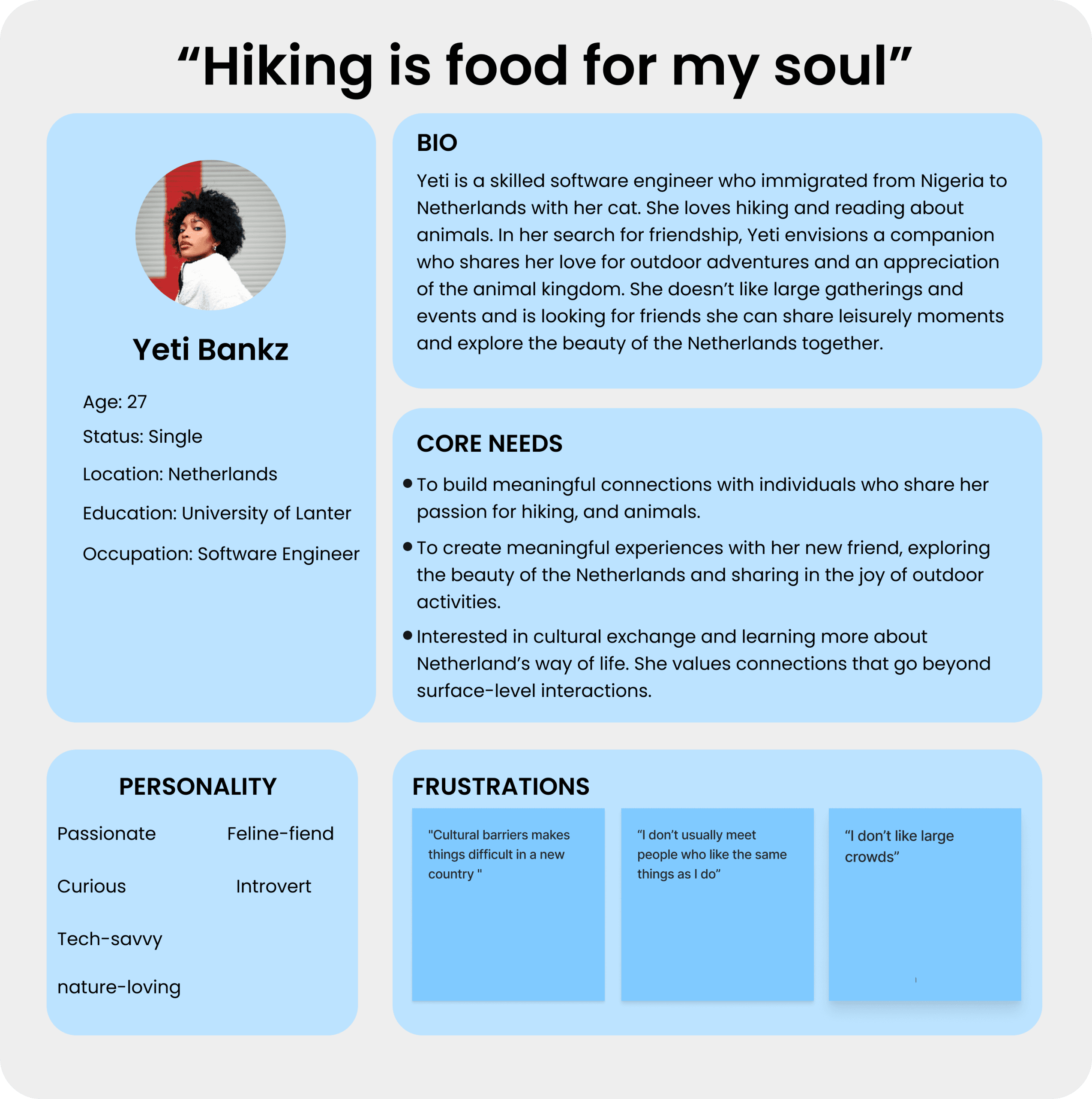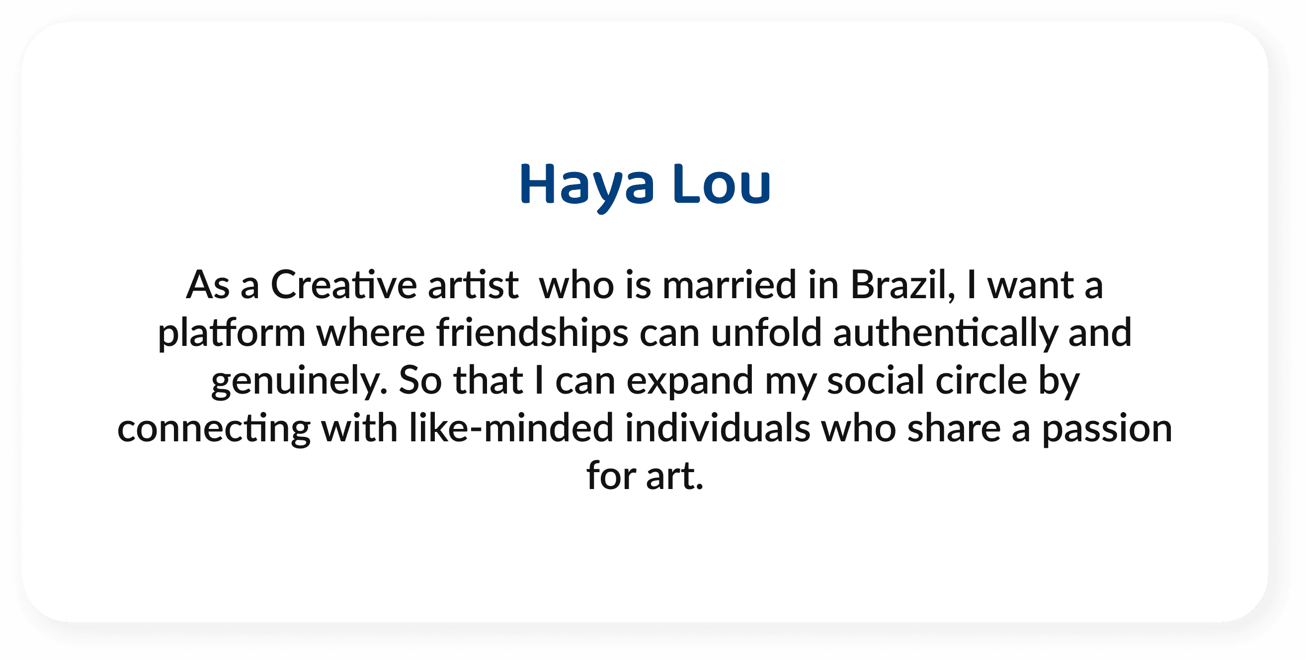 This research aimed to uncover the motivations behind seeking friendship solutions, analyze successful strategies employed by existing platforms, and explore historical barriers to forming meaningful connections. By understanding user needs, preferences, and past challenges, the goal was to design a comprehensive, user-centric solution that addresses pain points and fosters genuine, lasting friendships.