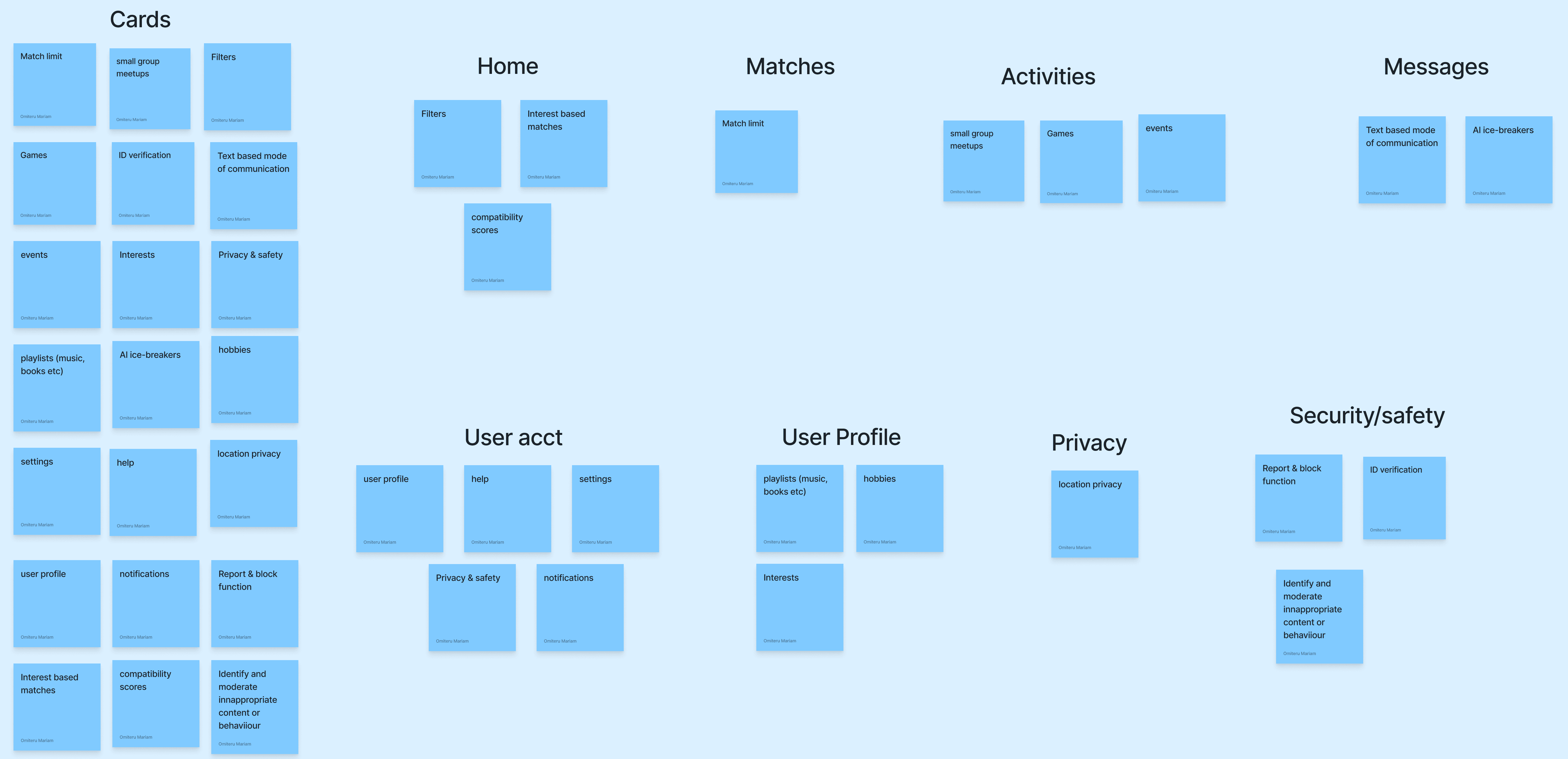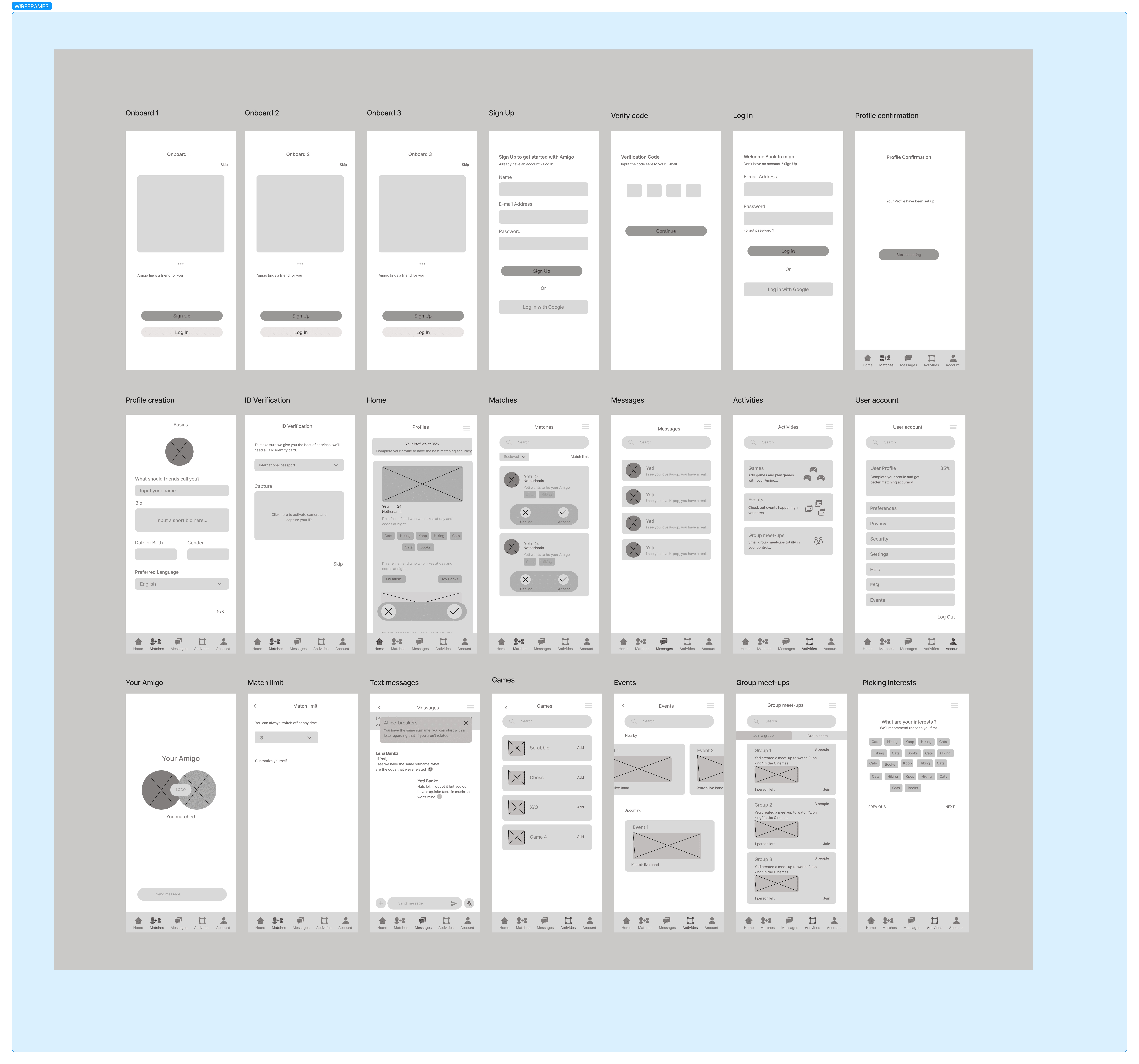 To ensure Amigo’s features were easy to navigate and access, I designed a clear and scalable Information Architecture. By aligning content with user needs, I streamlined the user journey, making it intuitive from onboarding through to connecting with others.