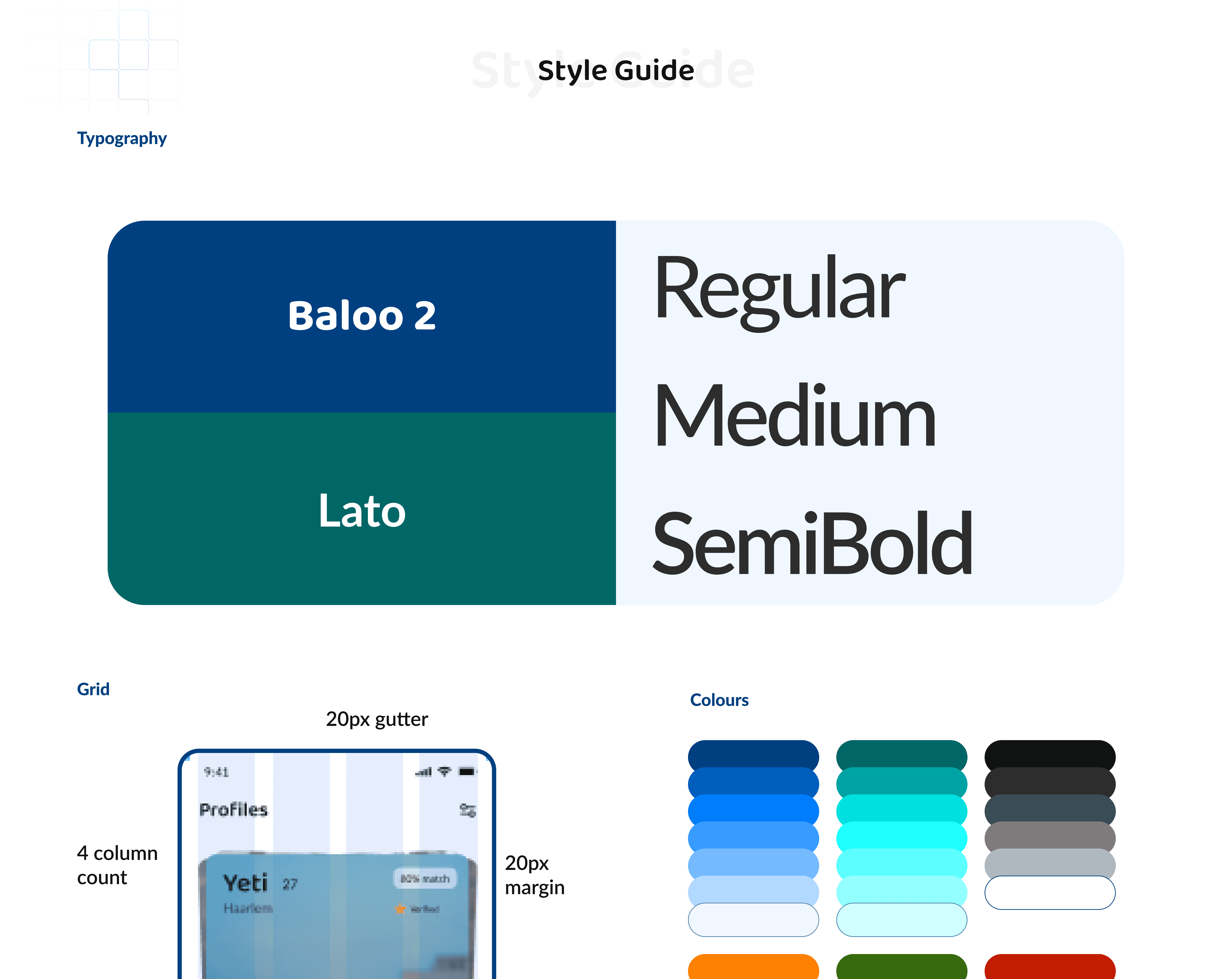 I created a style guide to ensure consistency and reflect Amigo’s values of inclusivity and authenticity. It outlines typography, grid, colours, icons, and UI components, maintaining clarity and harmony across the design.