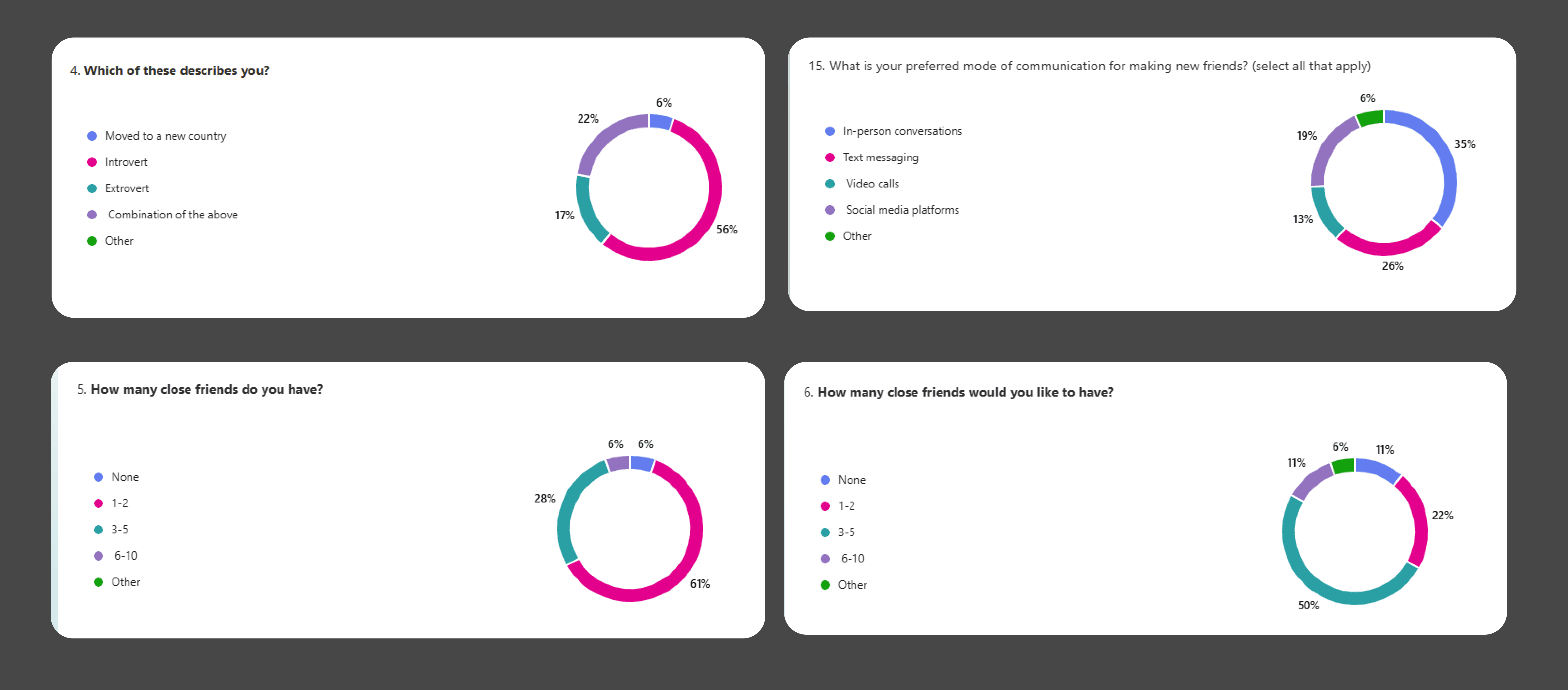Research identified that respondents revealed challenges in making friends in the past. For many, the main issue was connecting with like-minded individuals and navigating social anxiety.