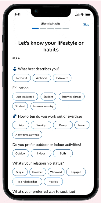 Small Group Meet-ups: Allows users to opt for intimate gatherings (2-5 people) for more comfortable interactions.